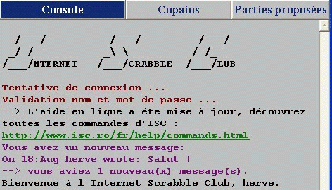 Suivi éventuellement de messages d'information destinés à tous les joueurs d'ISC et/ou de messages personnels que vous avez reçus.